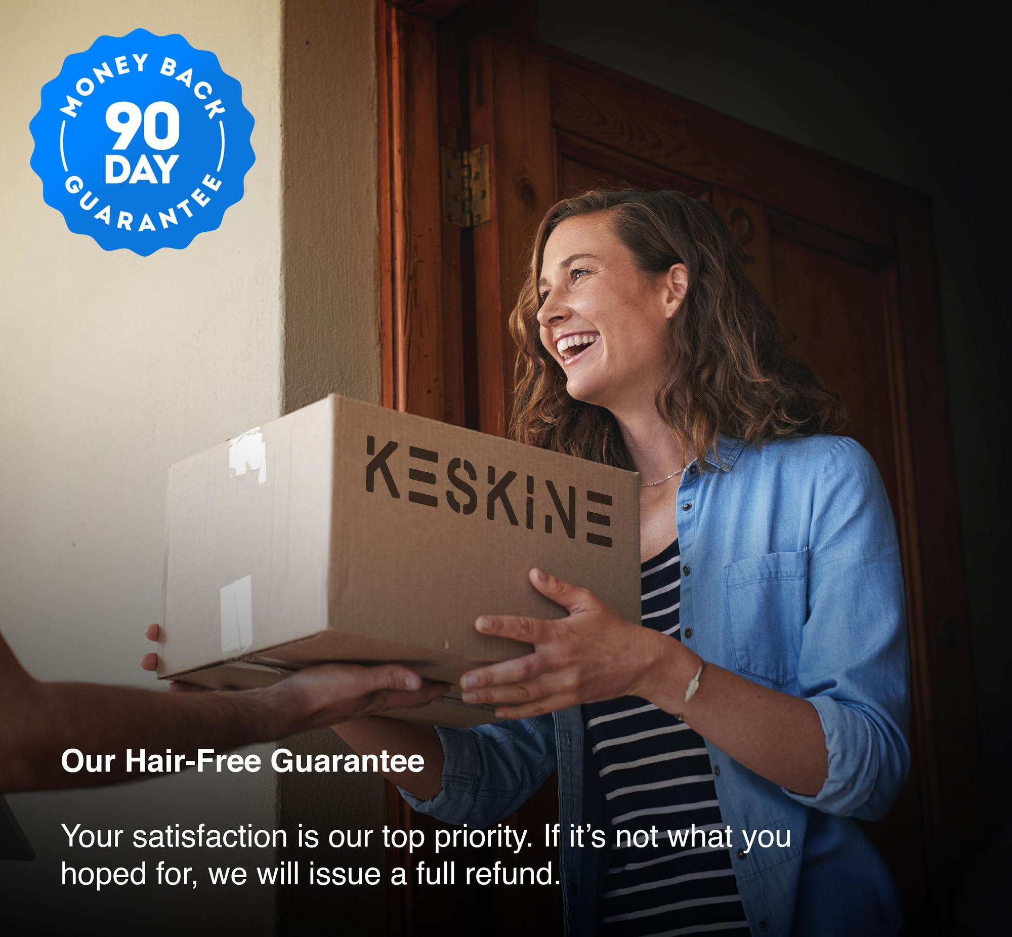 At Keskine, your satisfaction is our top priority. That's why we are proud to offer a 90-day hair-free money-back guarantee when you purchase our Keskine IPL device. If, within 90 days of your purchase from our official website, you are not satisfied with the product or the results, you may return it for a refund.